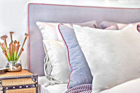 Pillows On The Bed Close Up With Blurred Background In A Modern