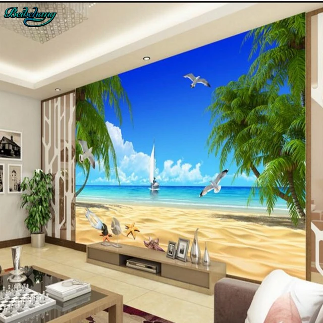 Beibehang Large Custom Aesthetic Beach Sea View Living Room Tv