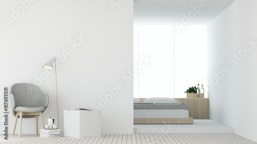 The Interior Hotel Bedroom And Relax Space 3d Rendering White