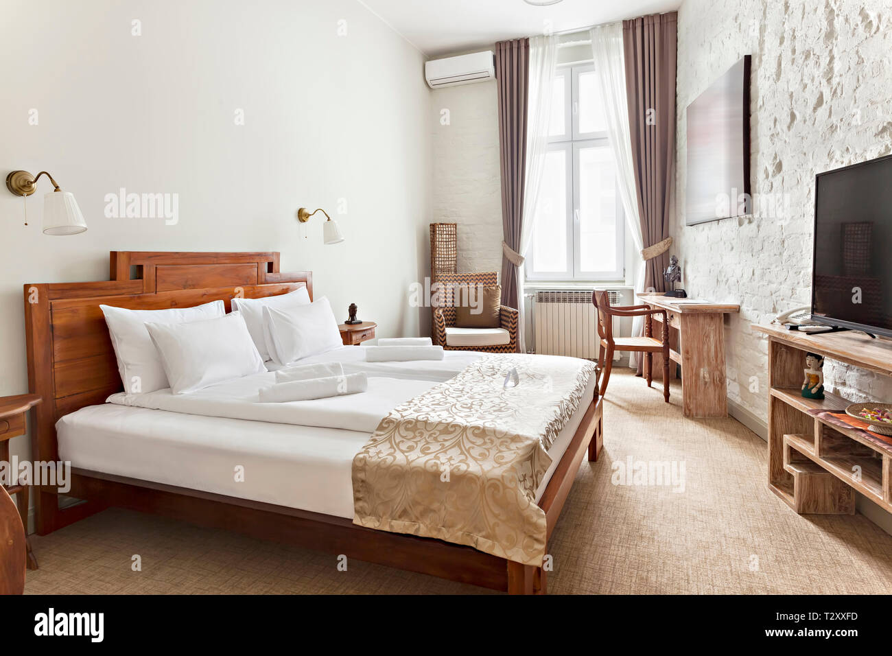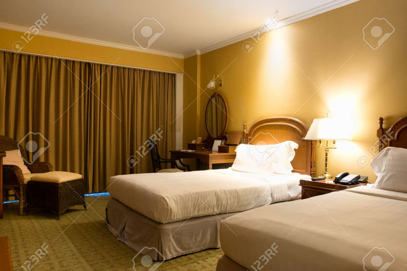 Interior Of A Hotel Bedroom For Background Stock Photo Picture And