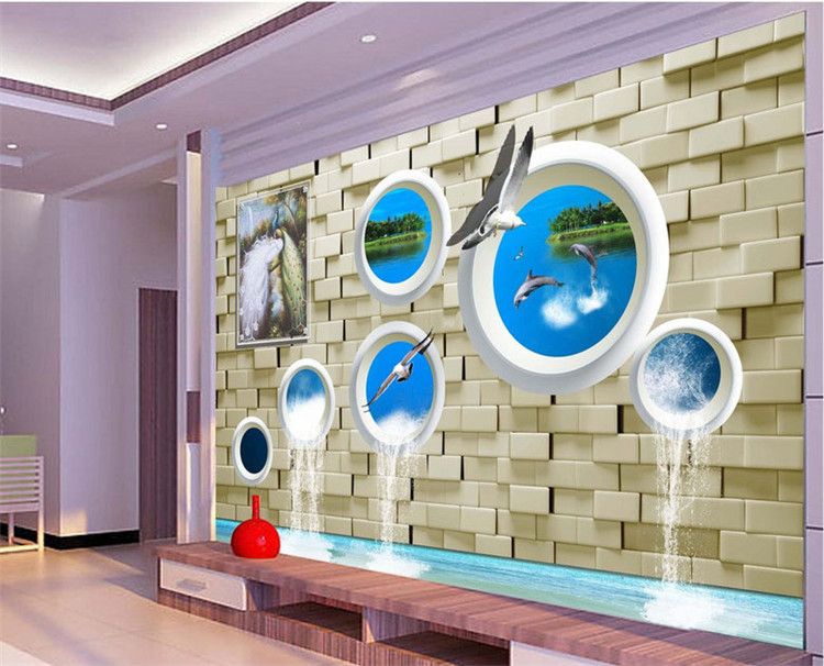 Mural Modern Background Peacock Brick Dolphin Fresco De Pared 3d